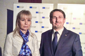 Spotkanie było okazją do rozmowy Pani Komisarz Elżbiety Bienkowskiej z Dyrektorem Krajowego Punktu Kontaktowego ds. Intrumentów Finansowych Programów UE, Arkadiuszem Lewickim, na temat aktywności Krajowego Punktu Kontaktowego w zakresie promocji instrumentow finansowych programu COSME w Polsce.
